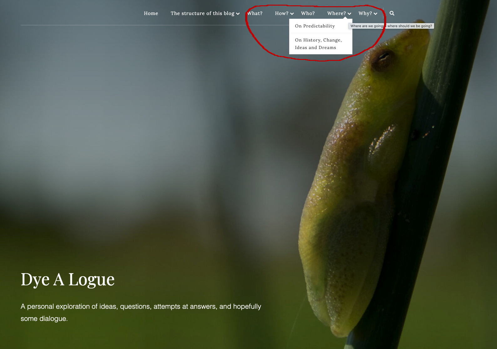 In my page A beginning I explain my reason for the creation of Dye-a-Logue, but for reasons that may surface in my subsequent posts, this blog has submissions in two forms – Pages and Posts.